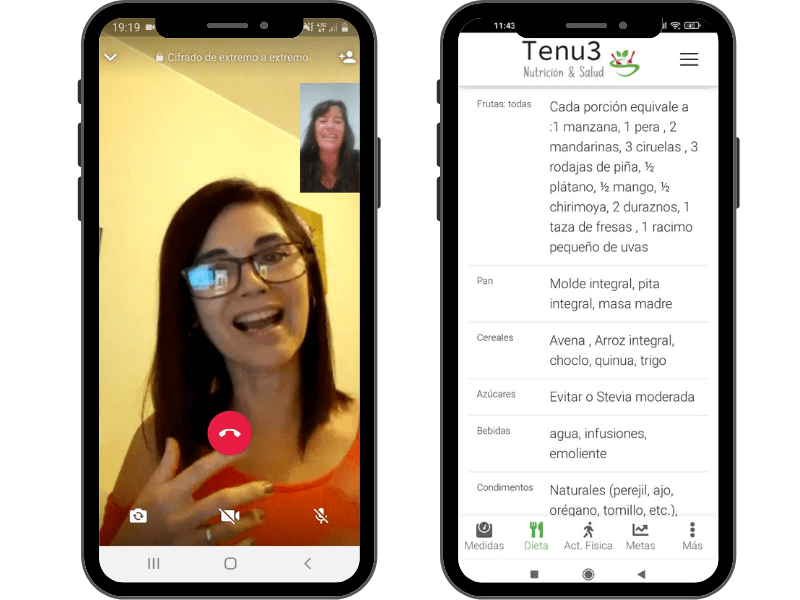 Video llamada, seguimiento del avance así como del plan alimentario y modificaciones necesarias para el cumplimiento de objetivos.